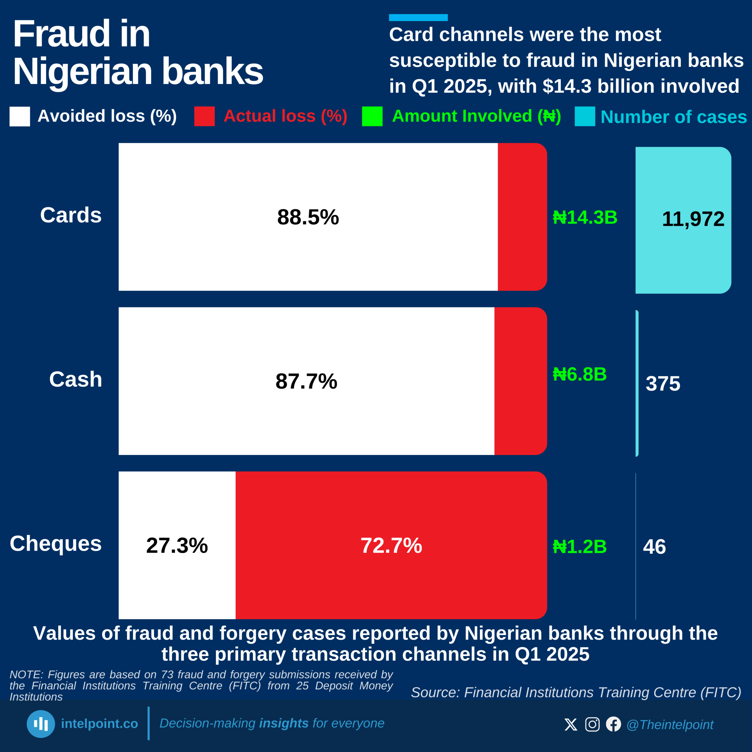 Actual losses on cards were 11.5% (₦1.6 billion) of the amount involved, showing that significant financial damage still occurs despite preventive systems