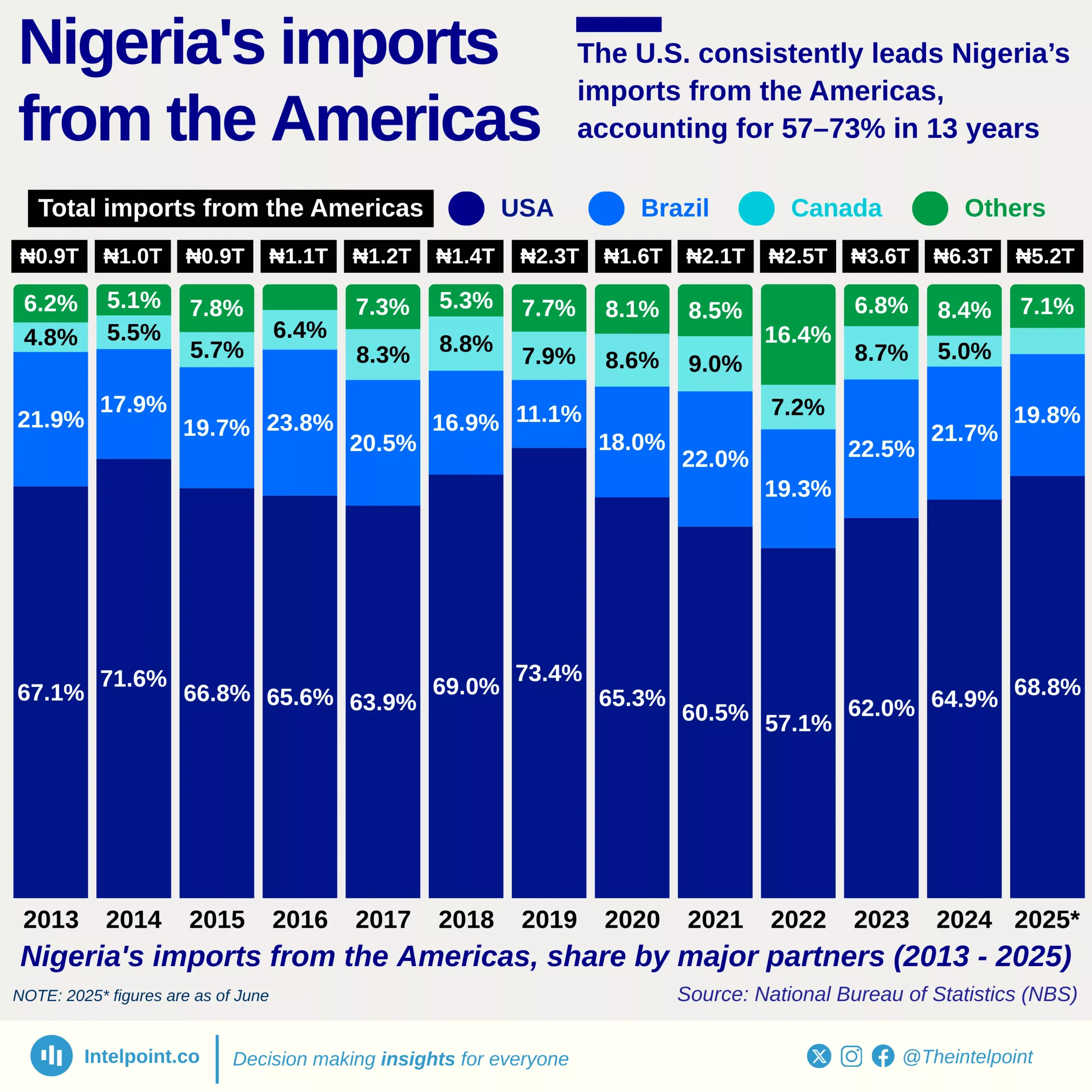 China remains Nigeria’s largest import partner, accounting for ₦4.96T or 32.45% of total imports—more than double the U.S.'s share.