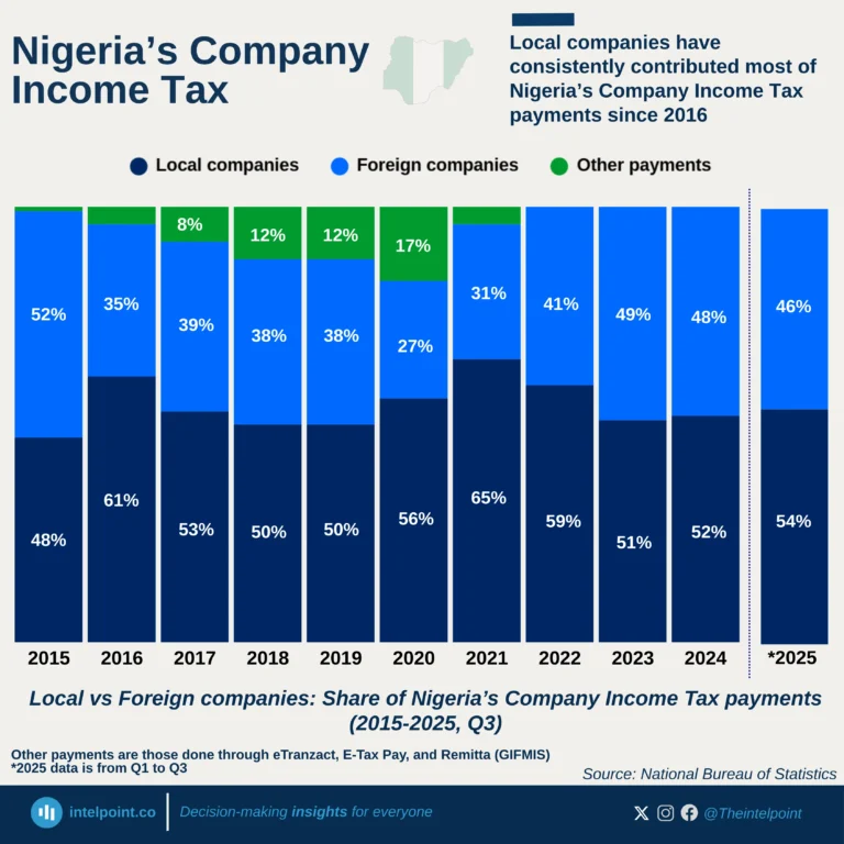 • Local companies dominated CIT contributions in most years, accounting for over 50% of payments in 9 of 11 periods between 2015 and 2025 (Q1–Q3).