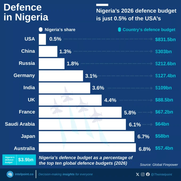 • European powers such as the UK ($88.5 billion), France ($67.2 billion), and Germany ($127.4 billion) all have defence budgets that dwarf Nigeria’s allocation