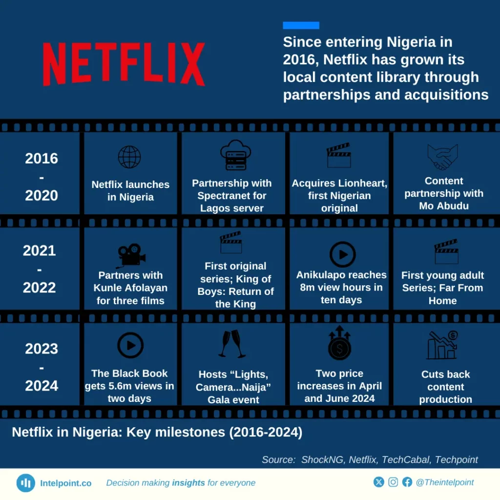 When streaming giant Netflix expanded its footprint to 130 countries in 2016, Nigeria was among the markets it entered. The company began by acquiring local content from producers and soon transitioned into creating original productions, investing $23.6m by 2022.