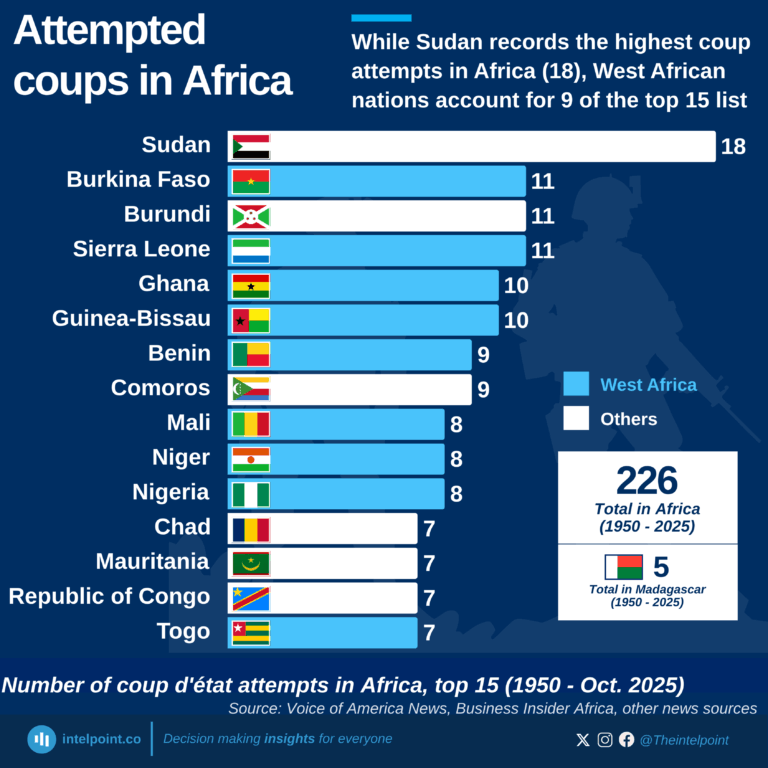 The data showcases Argentina leading with 276%, followed by Lebanon and Syria. Seven of the top fifteen are African.